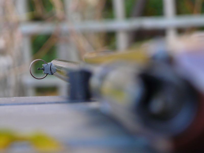 Przyrządy celownicze pozwalają strzelać na dystanse do 100 metrów. Szczerbina ma trzy, składane, stalowe przesłony – główną, stałą na 50 metrów, skrajną, przednią na 100 metrów i tylną na 75 metrów. Informacje o odległości są bite i malowane białą farbą na dwóch skrajnych przesłonach. Mucha zyskała stalową, tunelową osłonę, ta jest umieszczona na rampie. Sama mucha ma cieniuteńki słupek, który przechodzi w cylindryczny wałek - wraz z przesłonami szczerbiny stanowią wyśmienite połączenie.
