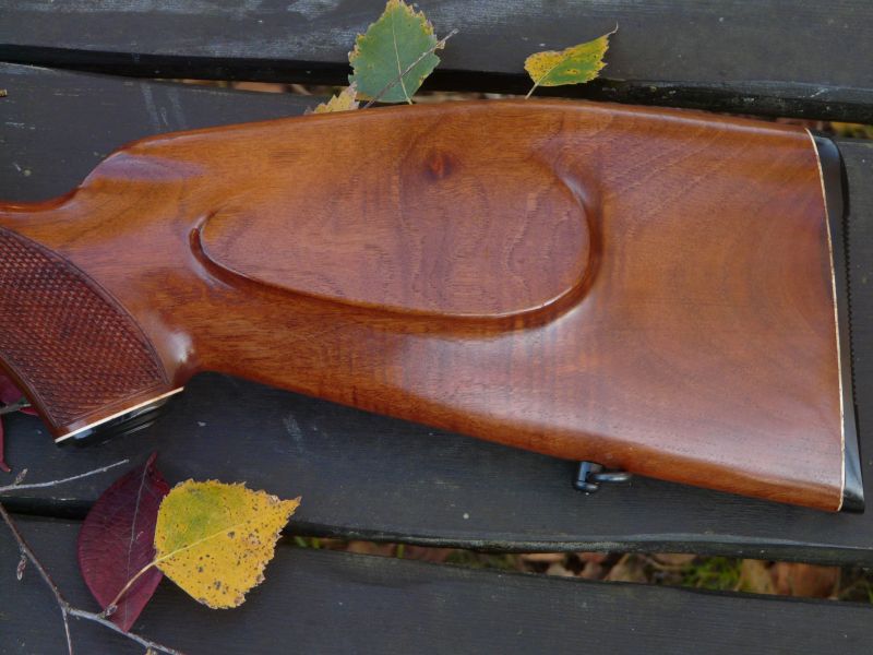 Prezentowany mod. 302, choć tutaj trzeba zaznaczyć, że nie sposób doszukać się rzeczywistych oznaczeń na broni i konkretnej nazwy modelu, posiada osadę orzechową, lakierowaną na wysoki połysk, z bogatym usłojeniem, kratkowaniem w części mocno profilowanego chwytu i łoża. Sama osada pochodzi z linii karabinów łowieckich, posiada dość wydajną bakę policzkową i stalowe, klasyczne bączki do pasa nośnego. Broń pochodzi z roku 1970, jednak jest w doskonałym stanie technicznym, praktycznie magazynowym.